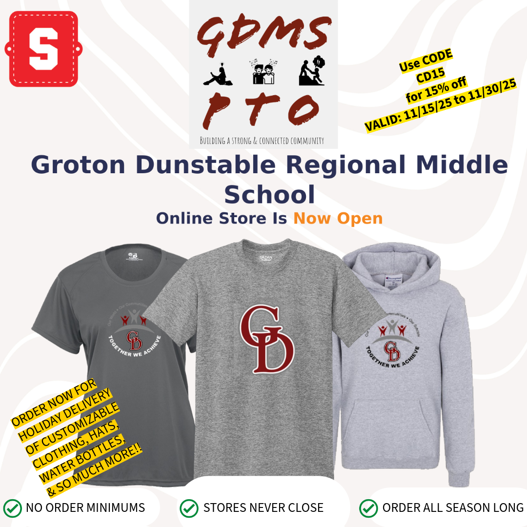 The Groton Dunstable Middle School Parent Teacher Organization (GDMS PTO) is a nonprofit organization whose purpose is to promote, encourage, & build community; to support the families of our students, teachers, administration, & within the GDRMS community.